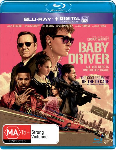 The Baby Driver Blu Ray stars Kevin Spacey, Ansel Elgort, Lily James, Jon Bernthal, Eiza González, with Jon Hamm and Jamie Foxx.